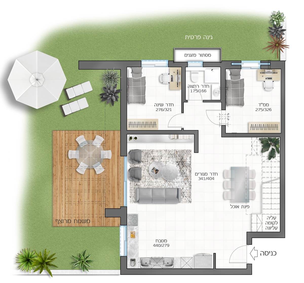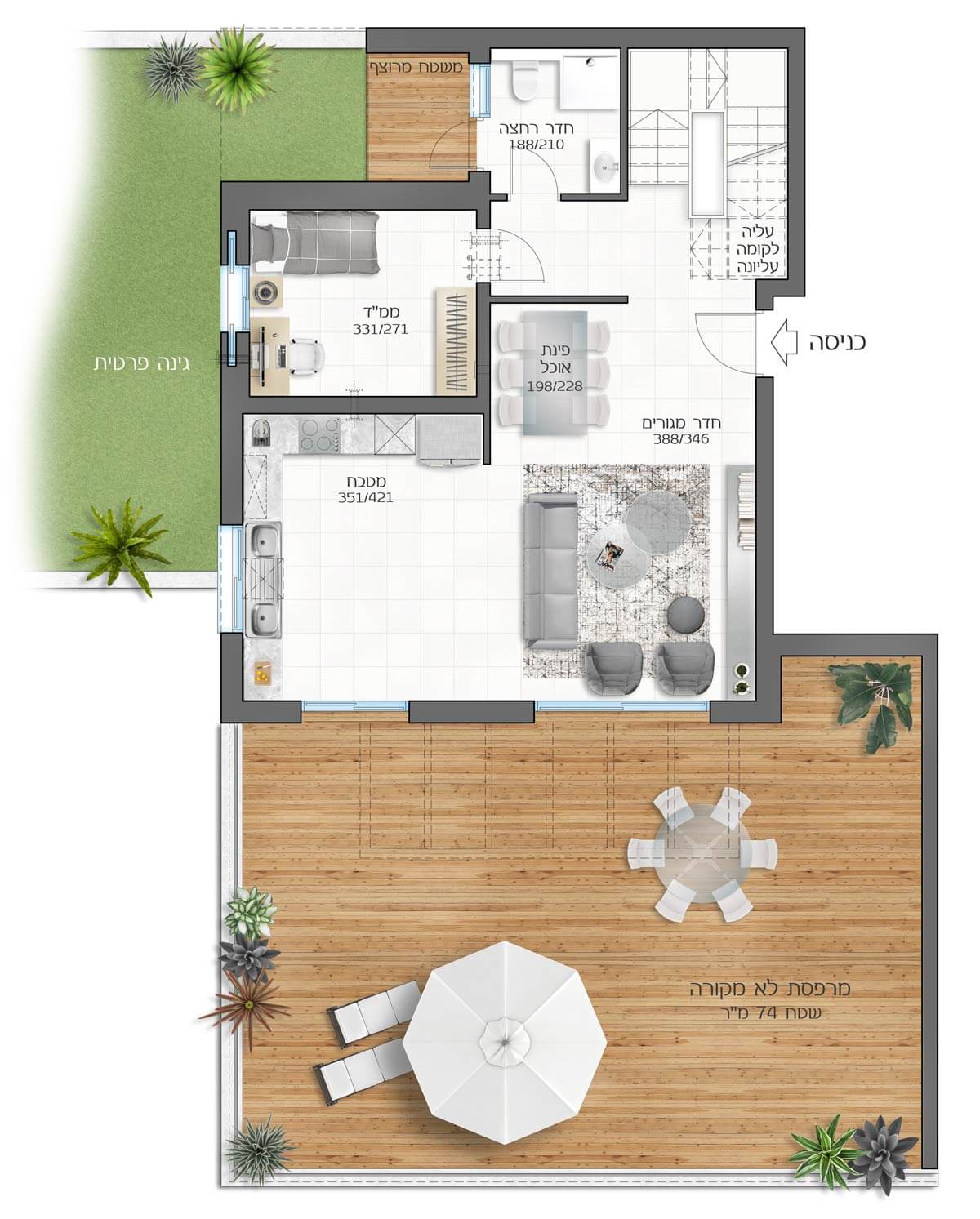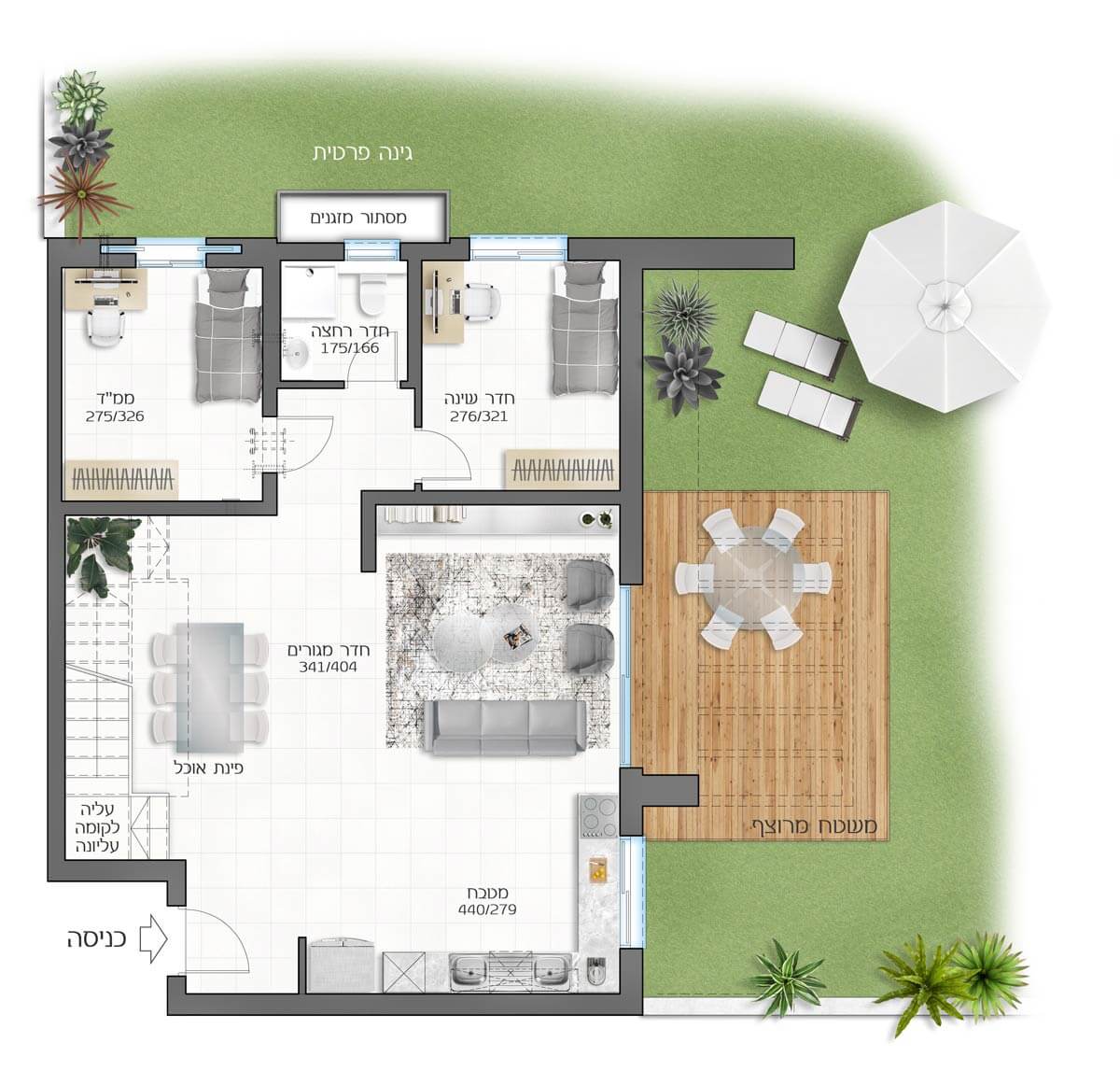 דופלקס | 5 חדרים + גינה פרטיתשטח דירה 149 מ״ר
